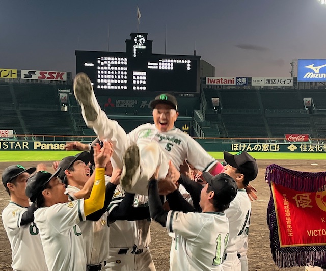 大会に対して、夢の舞台である甲子園で、プレーする事をゴールとせず甲子園で優勝を掴み取るとこまでを全員で目指し、プレーする事を心掛けて臨みました!当日初戦は大舞台甲子園ということに少し浮き足だちミスもあったが、準決勝・決勝と徐々に自分たちが今までやってきた事を出すと気持ちを入れ替えれた事が一番の勝因だと思います。