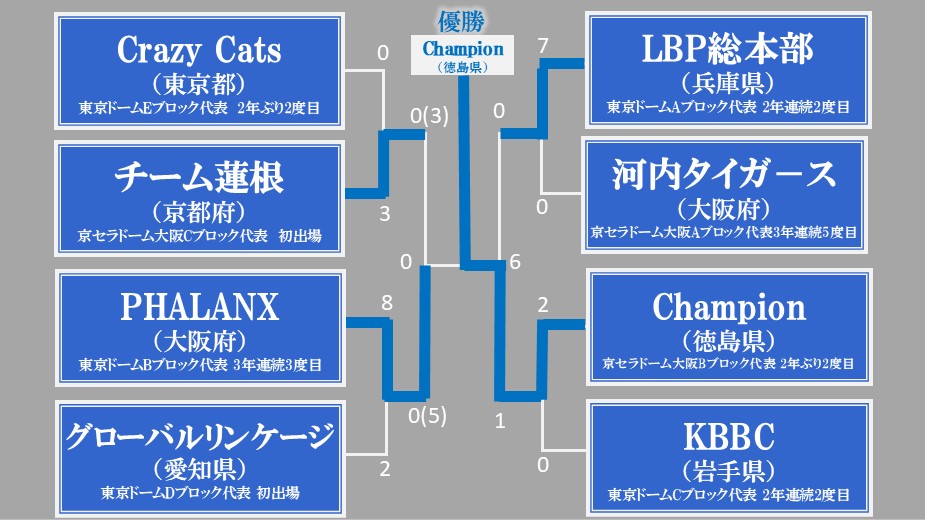 | 京セラドーム大阪Bブロック代表 | Champion(徳島県) | 2年ぶり2度目 |